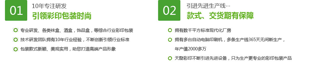 義烏市天勵彩印包裝廠,位于中國小商品城-義烏,公司專業(yè)生產(chǎn)各類襪盒、酒盒,飾品盒,瓦楞盒,吊卡,工藝品包裝盒,義烏地區(qū)彩印包裝,彩盒包裝加工,紙盒包裝,紙箱加工等,工廠位于義南工業(yè)區(qū),公司是國家一類彩印包裝生產(chǎn)企業(yè),擁有德國進口海德堡印刷機,單面瓦楞機組,裱紙機組,全自動覆膜機,加重加大壓痕機,燙金機為一體的生產(chǎn)企業(yè)。至今已有多年的生產(chǎn)制造經(jīng)驗,技術(shù)力量雄厚,加工設備先進,專業(yè)化程度高,具有雄厚的企業(yè)實力。我廠堅持以質(zhì)量求生存,以科技求發(fā)展,博采眾長,融合國內(nèi)外機械之精華精心設計自己的每一件產(chǎn)品,確保產(chǎn)品生產(chǎn)工藝嚴謹,歡迎來樣訂做。